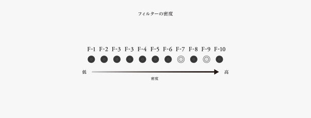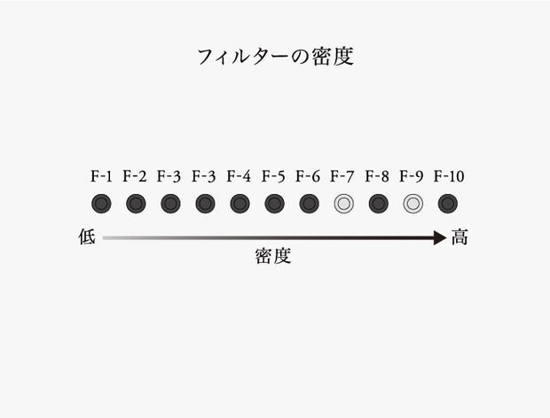 チューニング用フィルター(フィルターD:密度違いの10種類、フィルターE:密度違いの6種類、フィルターF:密度違いの10種類)