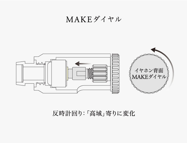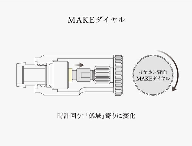 - イヤホン本体を分解せずチューニングが可能な新機構「MAKEダイヤル」搭載